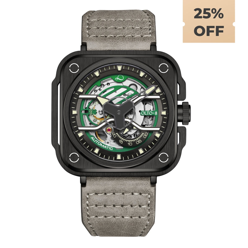 OLTO-8 IRON-X Square Skeleton Automatic Watch Green