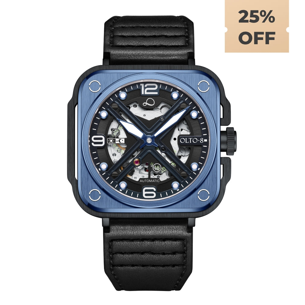 OLTO-8 IRON-X Square Skeleton Automatic Watch Blue