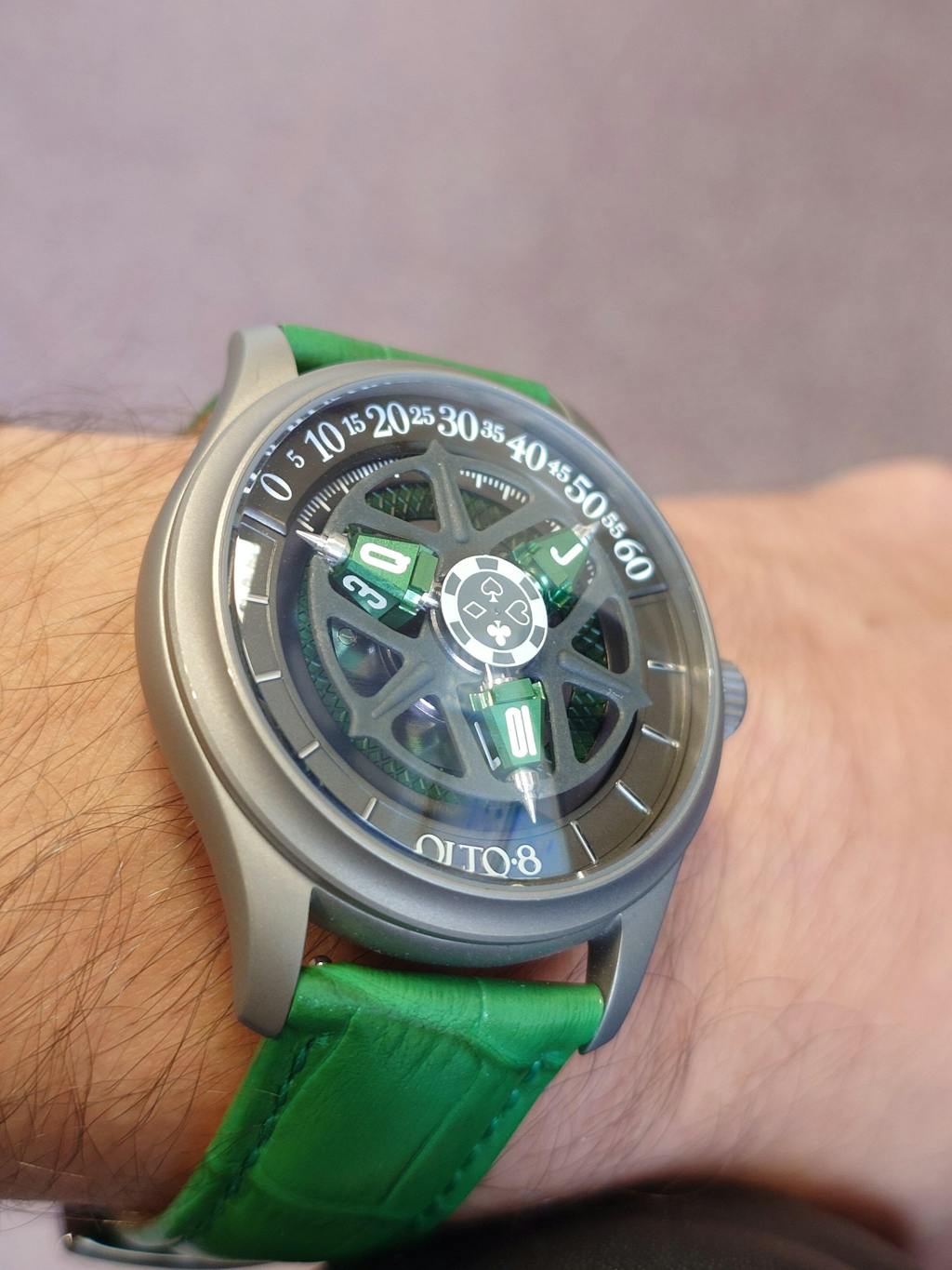 OLTO-8 KING features a multi-layered, three-dimensional copper surface process, involving oil pressure, cutting, polishing, plating, and super-luminous printing. This extensive treatment highlights its luxurious quality and exceptional craftsmanship. It also includes Swiss Super-LumiNova satellite hour wheel hands and a playing card-themed seconds disc, ensuring effortless readability at night.