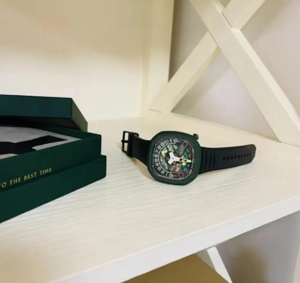 The process of telling time on the INFINITY II is unlike any other automatic watch. It employs a unique 5-layer dial layout that displays the hours (inner upper index), minutes (outer whole-circle index), and seconds (inner lower index). The watch features a multi-hand system with two hour hands arranged in a 180° position, one minute hand in a special triangle shape, and three second hands arranged in a 120° layout. These characteristics create an incredibly distinctive and attention-grabbing time display, making INFINITY II a true conversation starter!