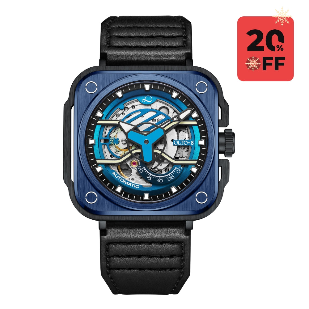 OLTO-8 IRON-EX Square Skeleton Automatic Watch Blue