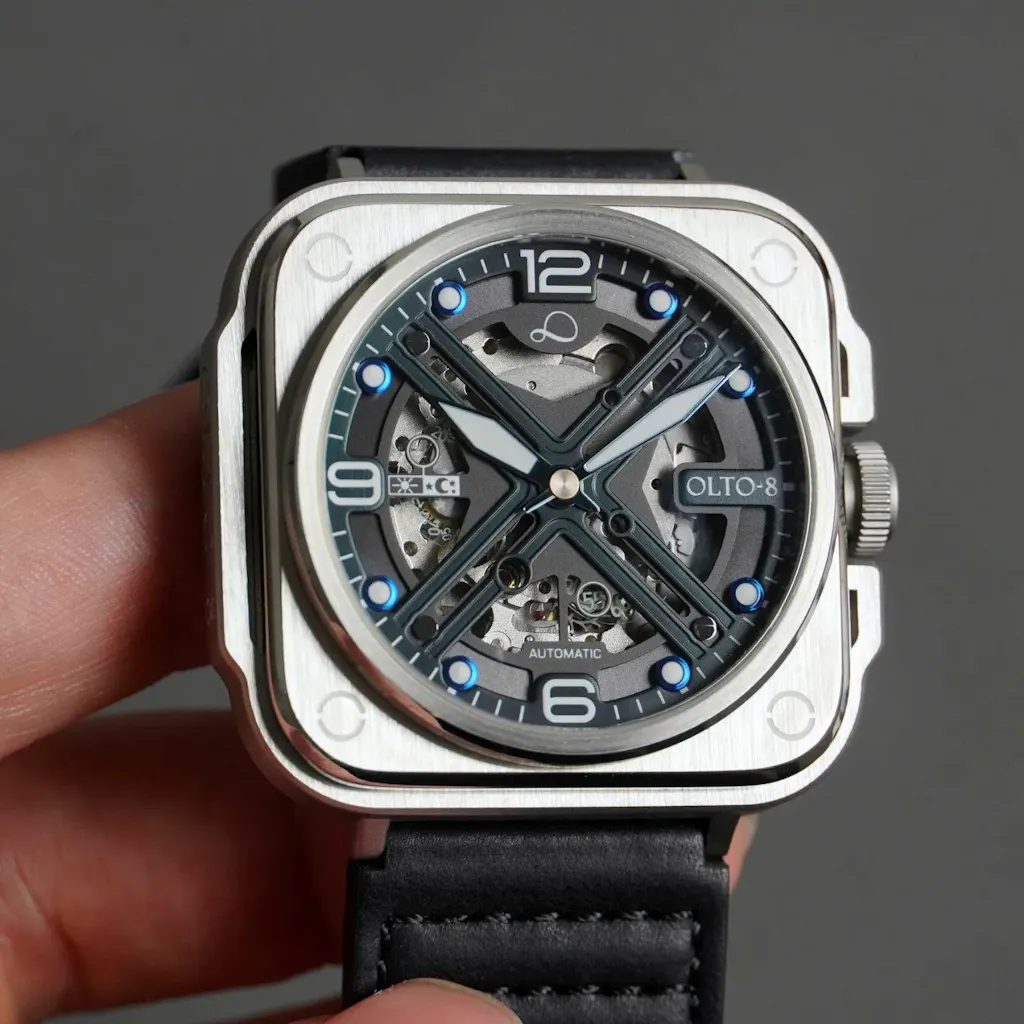 OLTO-8 IRON-X Square Skeleton Automatic Watch Silver