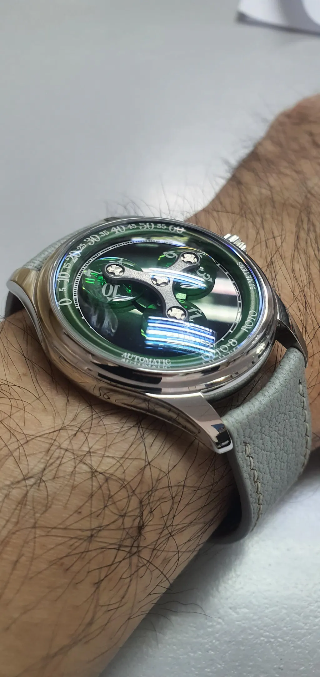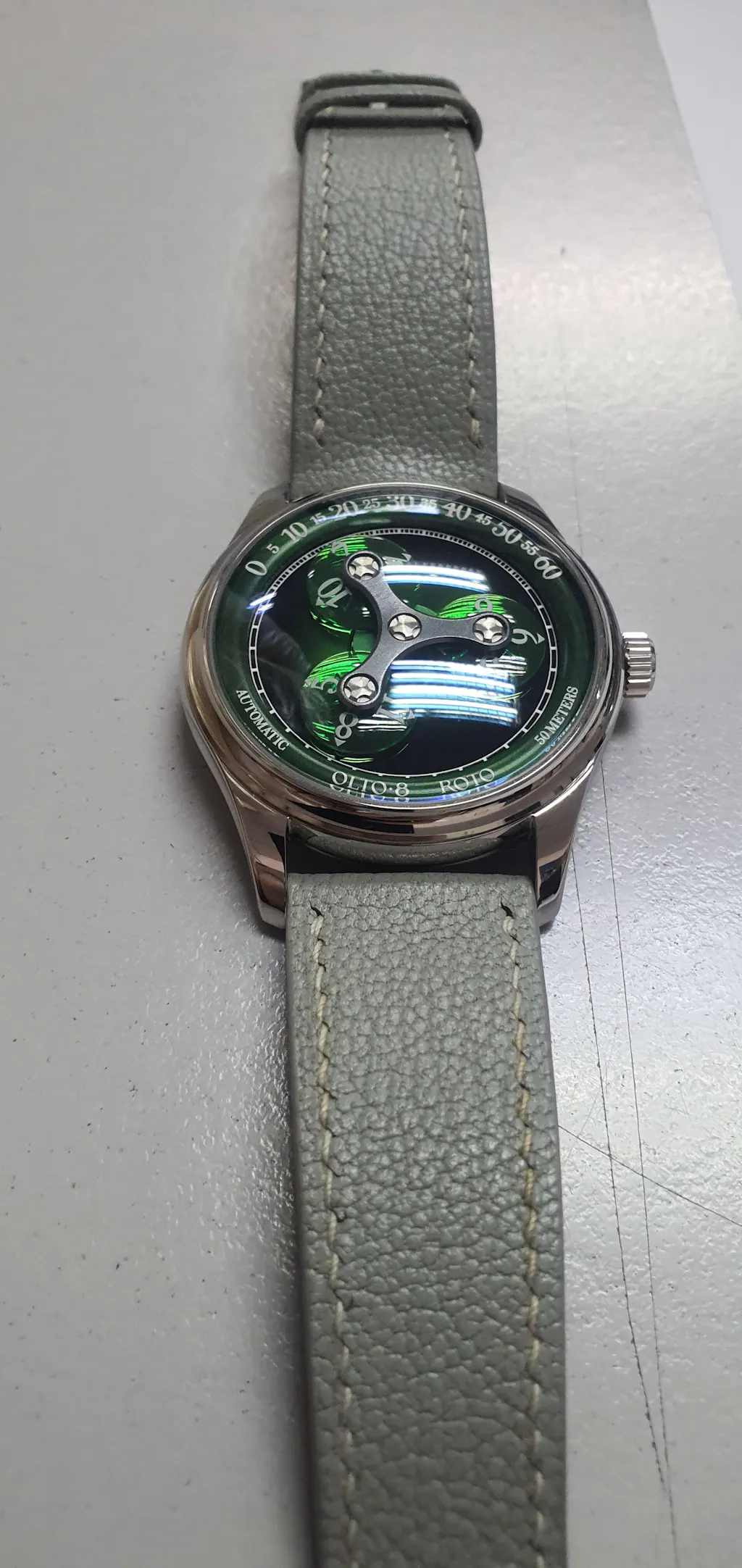 ROTO features a meticulously crafted 38mm circular case made from premium 316L stainless steel.With a thickness of only 9mm,ROTO is the thinnest wandering hour watch in the world.Each surface of the case is hand-polished for over 10 processes,this over 120 minutes of polishing resulting in a sleek and radiant finish
